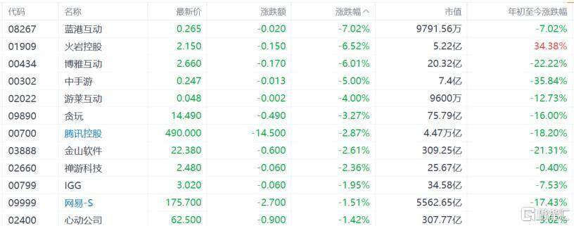 手游股走低,腾讯控股、金山软件、禅游科技跌超2%,IGG、网易、心动公司跌超1%。消息面上,近日关于“游戏版号审批新规:宫斗类、官斗类、棋牌类一律不受理”的相关内容在部分网络平台被传播,引起市场和行业的广泛关注。