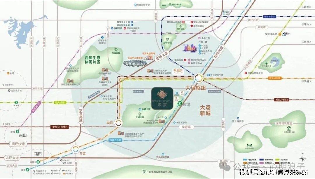 乐宸择址大运新城,以擎动东部的时代坐标之姿,立序湾东智芯。大运新城又定义为大运深港国际科教城,与前海、深圳湾、香蜜湖等区域并称深圳六大城市新客厅,汇聚东部最大综合交通枢纽。区域引进NBA中国赛、当红明星演唱会,深圳国际大学城落户,带动高能级配套激增,造就从容进阶的生活质感。