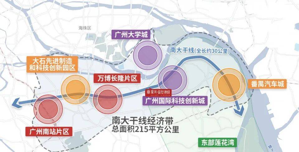 两大世界级商圈+三大科创轴交汇,城市发展强劲引擎。【万博、琶洲】双商圈辐射,【广深港澳科技走廊、广州科技创新轴、南大干线经济带】科创产业交汇!