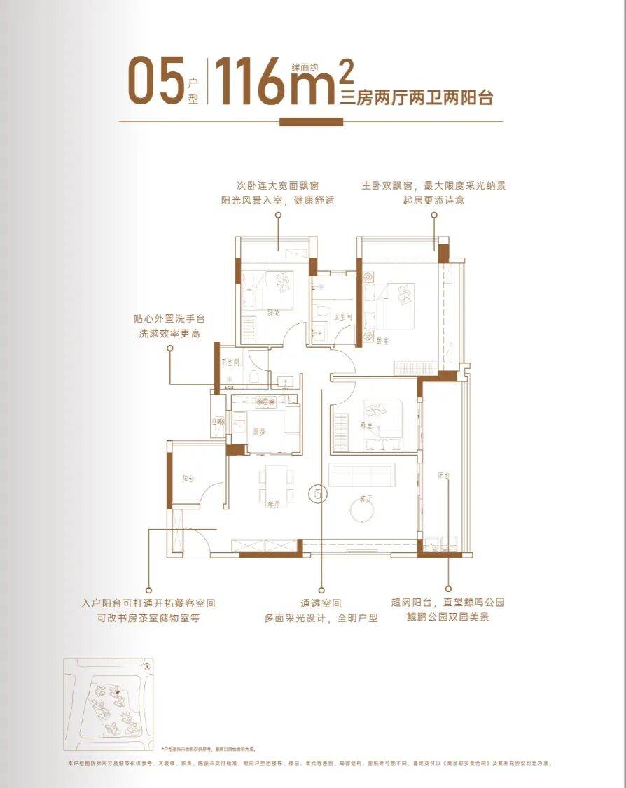 98㎡户型全新升级,主朝向朝南,让阳光洒满每一个角落。主卧配备 270° 无柱飘窗,视野开阔,美景尽收。次卧和阳台尺度大幅增加,提供更加舒适的居住体验,无论是休闲娱乐还是晾晒衣物都更加从容。