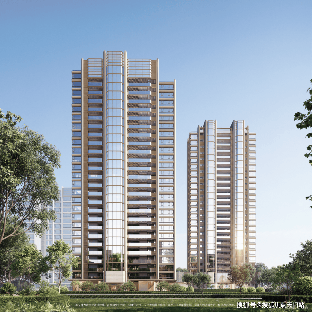 项目打造现代海派风格的外立面,线条简洁大气; 社区规划六重生活体验空间,从酒店式落客入口、镜面水庭到美学花园,旨在将高端酒店的奢享基因融入日常生活。