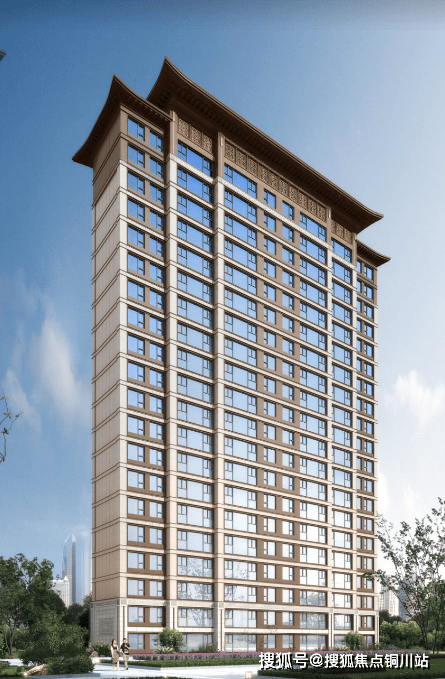 项目外立面采用经典三段式结构,以水平线条为框架,配合平顶飞檐、定制华纹浮雕等元素,很是气派。